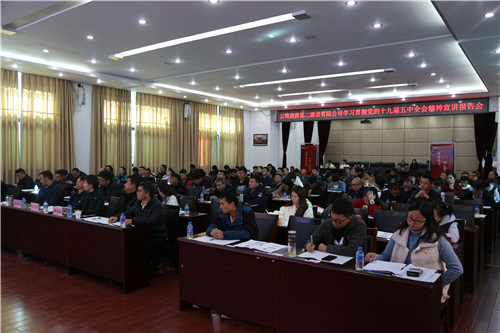 為深入學(xué)習(xí)貫徹習(xí)近平總書記在黨的十九屆五中全會上的重要講話精神,深刻領(lǐng)會黨的十九屆五中全會精神實質(zhì)和豐富內(nèi)涵,進一步推動全會精神在公司生產(chǎn)經(jīng)營實踐中落地生根,開花結(jié)果,11月27日下午,公司黨委邀請云南省社會科學(xué)院馬克思主義研究院研究員、云南省云嶺青年宣講團成員張德兵教授在公司小禮堂做專題解讀。公司領(lǐng)導(dǎo)班子成員、各黨支部負責(zé)人和部分干部職工共150余人現(xiàn)場聆聽。宣講全程還通過釘釘軟件在公司范圍內(nèi)直播宣傳。
