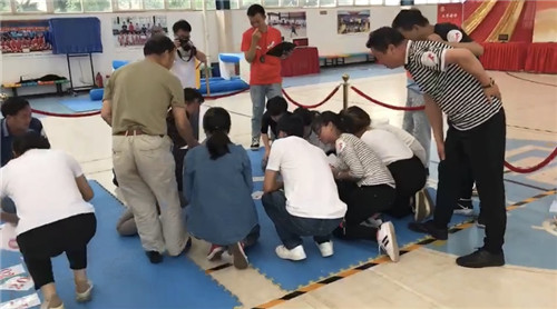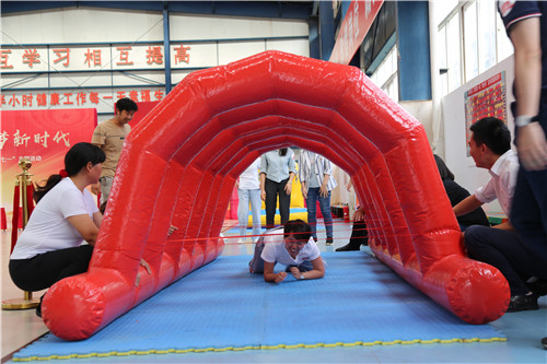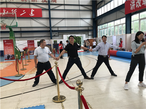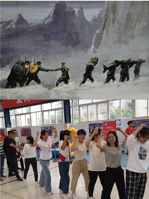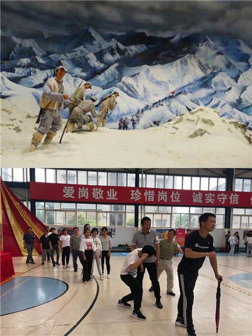 黨課后,參會人員來到公司籃球館參與主題黨建活動?;顒痈鶕?jù)長征路線的重要地點和發(fā)生的重要事件,設(shè)置了“翻雪山”、“過草地”、“飛奪瀘定橋”、“遵義會議”“四渡赤水”、“激戰(zhàn)臘子口”、“三軍會師”等七個游戲,參加活動的人員隨機組建成“薪火相傳”、“錚錚鐵骨”、“眾志成城”、“百煉成鋼”、“勇往直前”五支隊伍參與活動。