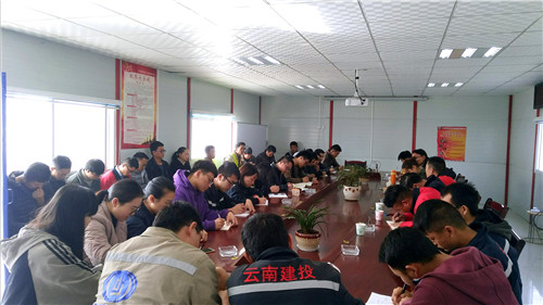 12月4日,公司總經(jīng)理王現(xiàn)合到十九直蒙屏項(xiàng)目講黨課,直管部主任丁聰林和項(xiàng)目全體人員參加。