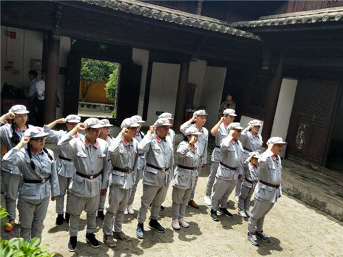 一下車就看到一連片的黃色古老建筑和鮮紅的黨旗在風(fēng)中舞動(dòng),戴上黨徽換上紅軍服,在黨員代表董華同志的帶領(lǐng)下,大家重溫入黨誓詞,緬懷革命先烈,銘記烈士們?yōu)閲?guó)家和名族的解放不惜犧牲生命的英勇精神,牢記愛國(guó)主義信念。
