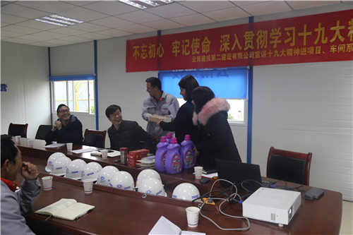 公司黨委工作部相關(guān)人員解讀黨的十九大報(bào)告并開展黨的十九大相關(guān)知識(shí)問(wèn)答活動(dòng),給搶答正確的員工送上小獎(jiǎng)品。黨員李俊馳拿到的獎(jiǎng)品最多,他說(shuō):“我在廠里面工作的同時(shí),也關(guān)注和學(xué)習(xí)黨的十九大精神,提的問(wèn)題我很多都會(huì),黨的十九大跟我們的工作生活息息相關(guān),作為黨員,我們要發(fā)揮好先鋒模范帶頭作用,把學(xué)習(xí)好宣傳好黨的十九大精神引向深入到我們周圍”。