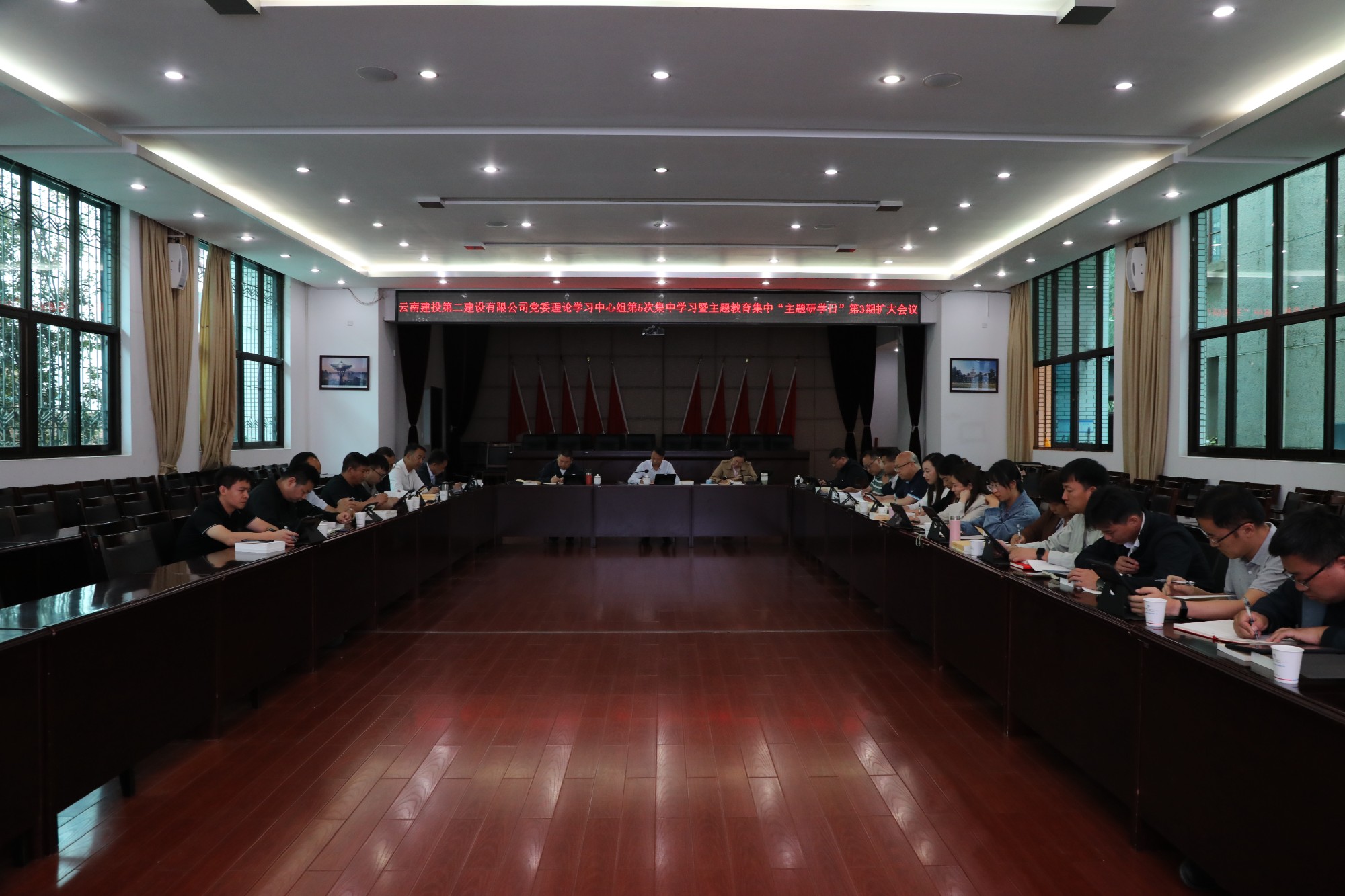 5月12日下午,公司黨委在一樓會議室召開理論中心組第五次集中學(xué)習(xí)擴(kuò)大會暨第三期主題教育集中“主題研學(xué)日”。公司領(lǐng)導(dǎo)班子、擴(kuò)大班子成員及各職能部門負(fù)責(zé)人參加研學(xué),會議由公司黨委副書記、董事長陳定華主持。
