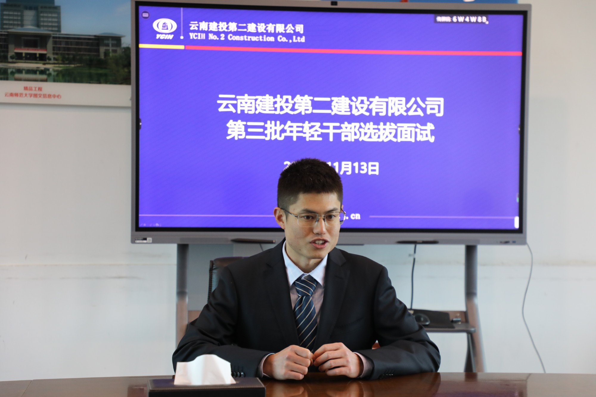 面試包括競(jìng)聘演講以及評(píng)委提問兩個(gè)環(huán)節(jié)。面試人員從工作經(jīng)歷、競(jìng)聘優(yōu)勢(shì)、取得的成績(jī)等各個(gè)方面向領(lǐng)導(dǎo)評(píng)委充分展現(xiàn)自己。“從懵懂無知的少年到現(xiàn)在我能獨(dú)立撐起一個(gè)項(xiàng)目的安全管理工作……”“這個(gè)項(xiàng)目我最大的收獲是……”“我未來的職業(yè)規(guī)劃是……”面對(duì)評(píng)委的提問,面試人員自信沉著應(yīng)答,充分展現(xiàn)出二建青年專業(yè)知識(shí)過硬、團(tuán)隊(duì)協(xié)作有方,有青春活力、敢打敢拼的良好形象。本次面試還對(duì)3名未能到現(xiàn)場(chǎng)的一線工作人員進(jìn)行了視頻面試。