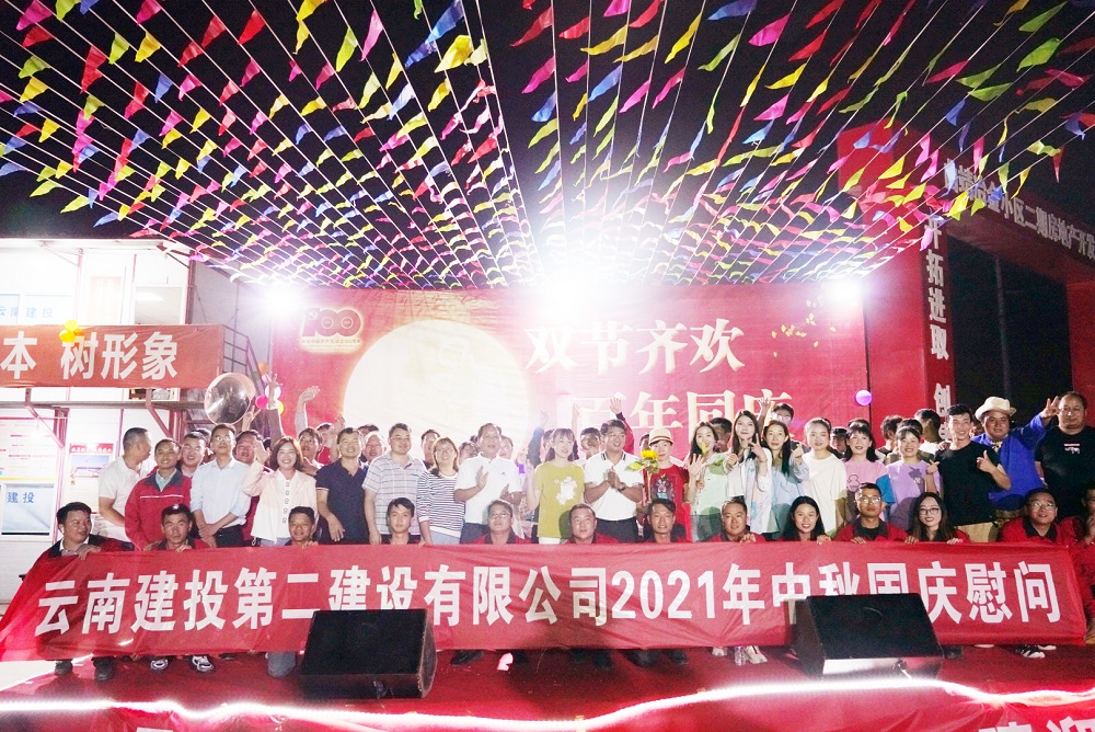 月滿中秋國慶至,百年華誕二建迎。9月15日-18日,公司黨委書記、副董事長萬向遵,黨委委員、工會主席胡云紅,總經(jīng)濟師陰明珉,生產(chǎn)管理部經(jīng)理攜工會中秋國慶慰問組一行到昭通鎮(zhèn)雄片區(qū)、曲靖片區(qū)、大理片區(qū)、昆明片區(qū)開展“我為群眾辦實事”文藝演出進工地活動,到公司重點工程、職工相對集中的施工項目,與一線職工共同歡度中秋國慶佳節(jié)。