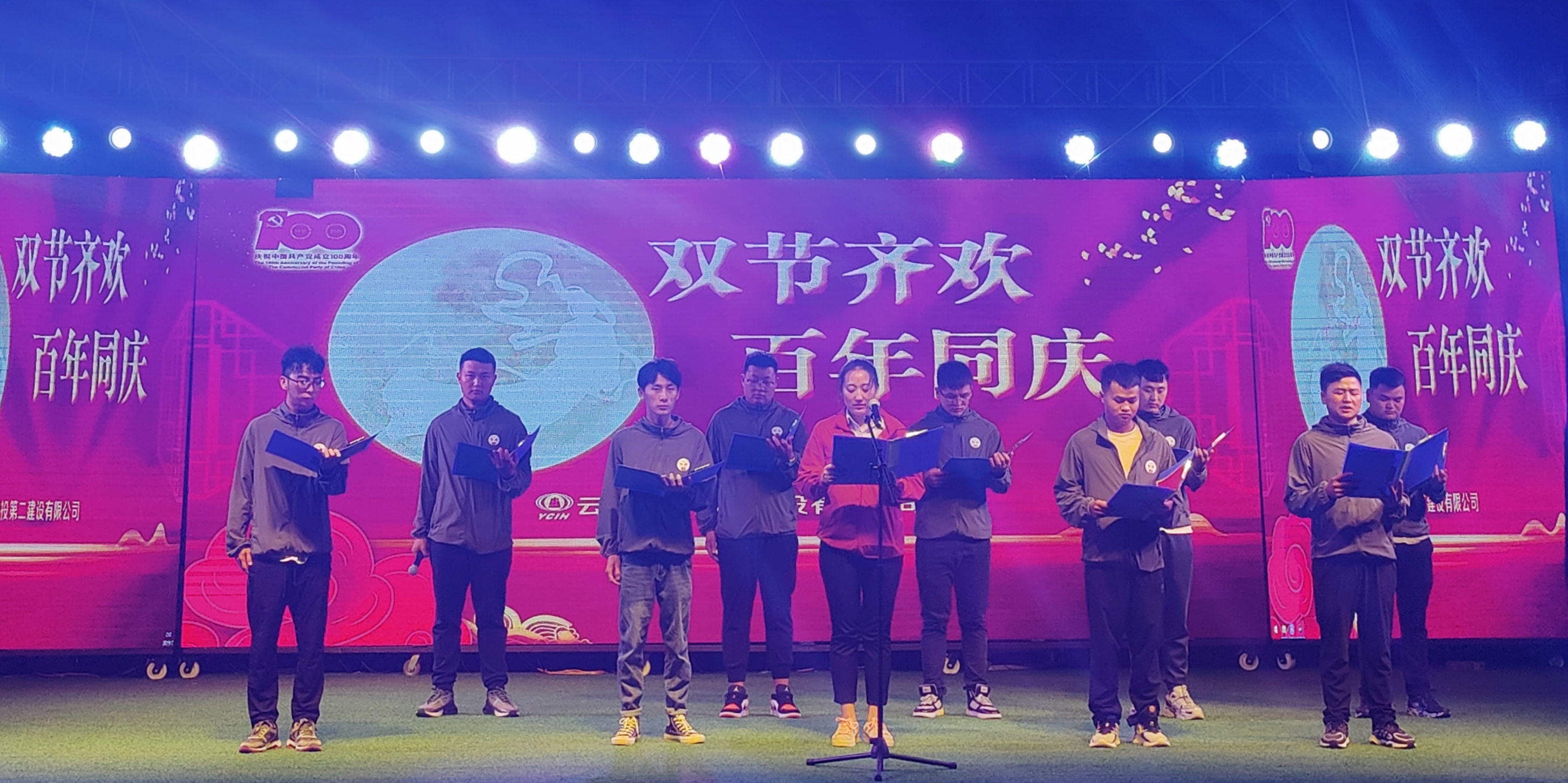 晚會上,慰問組成員為大家?guī)砹司实奈璧概c彈唱節(jié)目,大理片區(qū)的各參建單位也獻上各自的才藝表演,包含了開場舞《全民健身操》、歌曲《七月火把節(jié)》、琵琶彈唱《青花瓷》、詩朗誦《初心不改、繼往開來》等節(jié)目,現(xiàn)場營造出了歡樂、昂揚、奮進向上的氛圍。