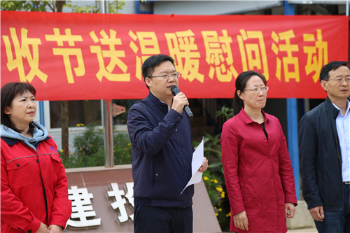 為慶祝第二個(gè)“中國農(nóng)民豐收節(jié)”的到來,認(rèn)真貫徹落實(shí)以習(xí)近平同志為核心的黨中央關(guān)于“三農(nóng)”工作的指示精神,關(guān)心關(guān)愛建筑行業(yè)的城市建設(shè)者。9月25日上午,省總工會(huì)黨組成員、副主席張弛代表省總工會(huì)到公司滇池明珠廣場二期建設(shè)項(xiàng)目開展“慶祝農(nóng)民豐收節(jié)送溫暖慰問活動(dòng)”。集團(tuán)工會(huì)常務(wù)副主席楊金、公司黨委書記邢儒民參加活動(dòng)。