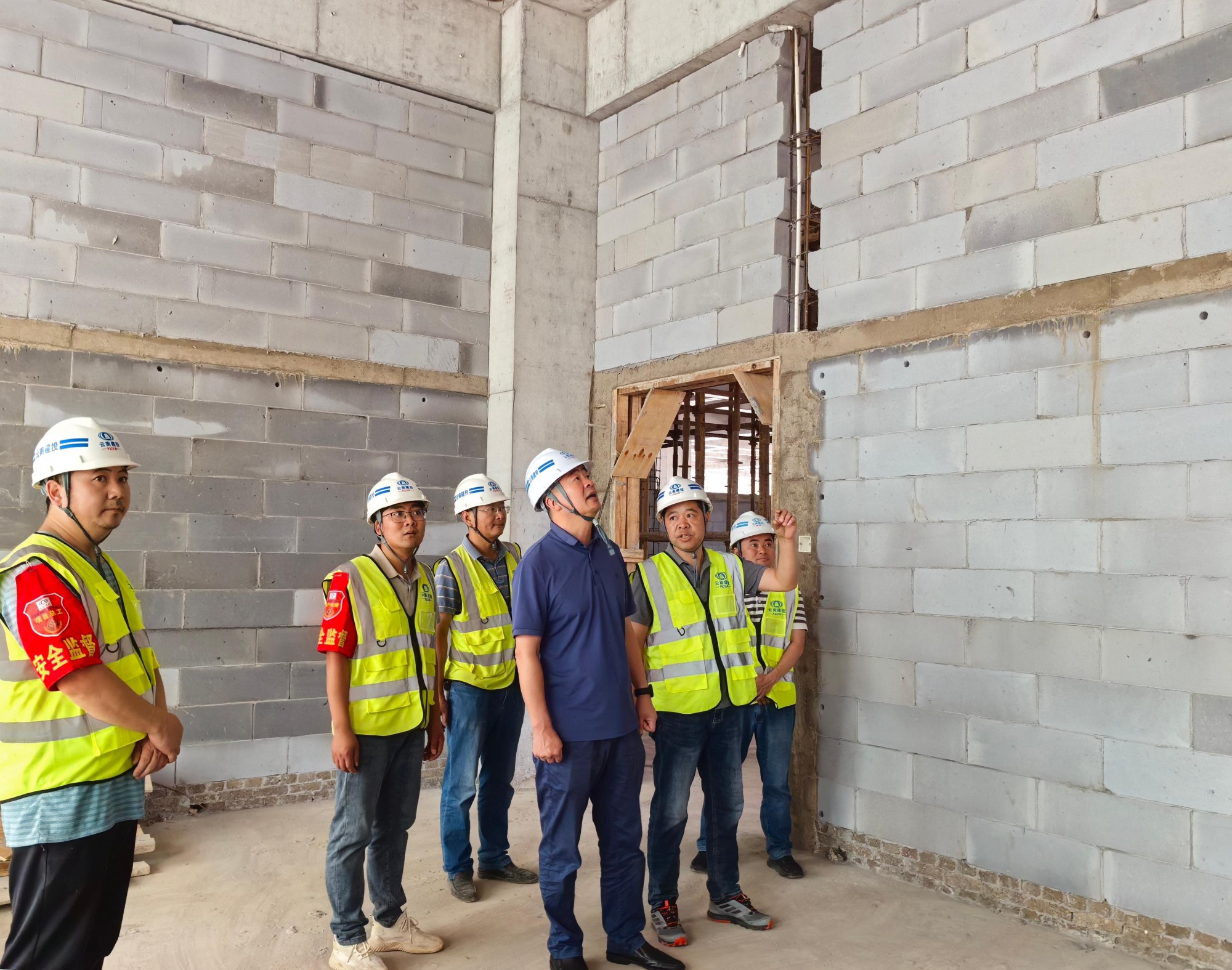 孫道光深入施工現(xiàn)場,詳細查看了項目主體結構及二次結構施工情況,對現(xiàn)場安全防護、進度、質量、主材、輔材集采及定型化產(chǎn)品應用等方面進行了深入了解,聽取了項目負責人關于項目建設進展的情況匯報。