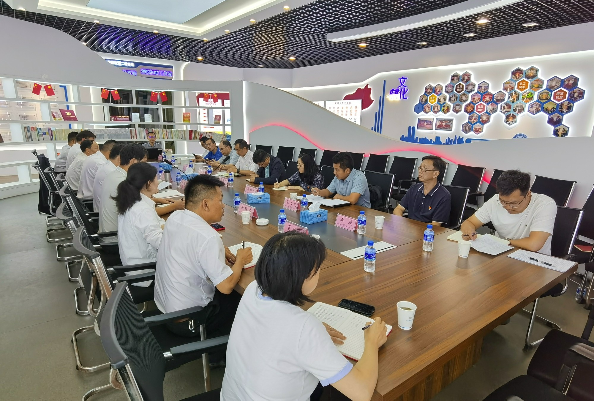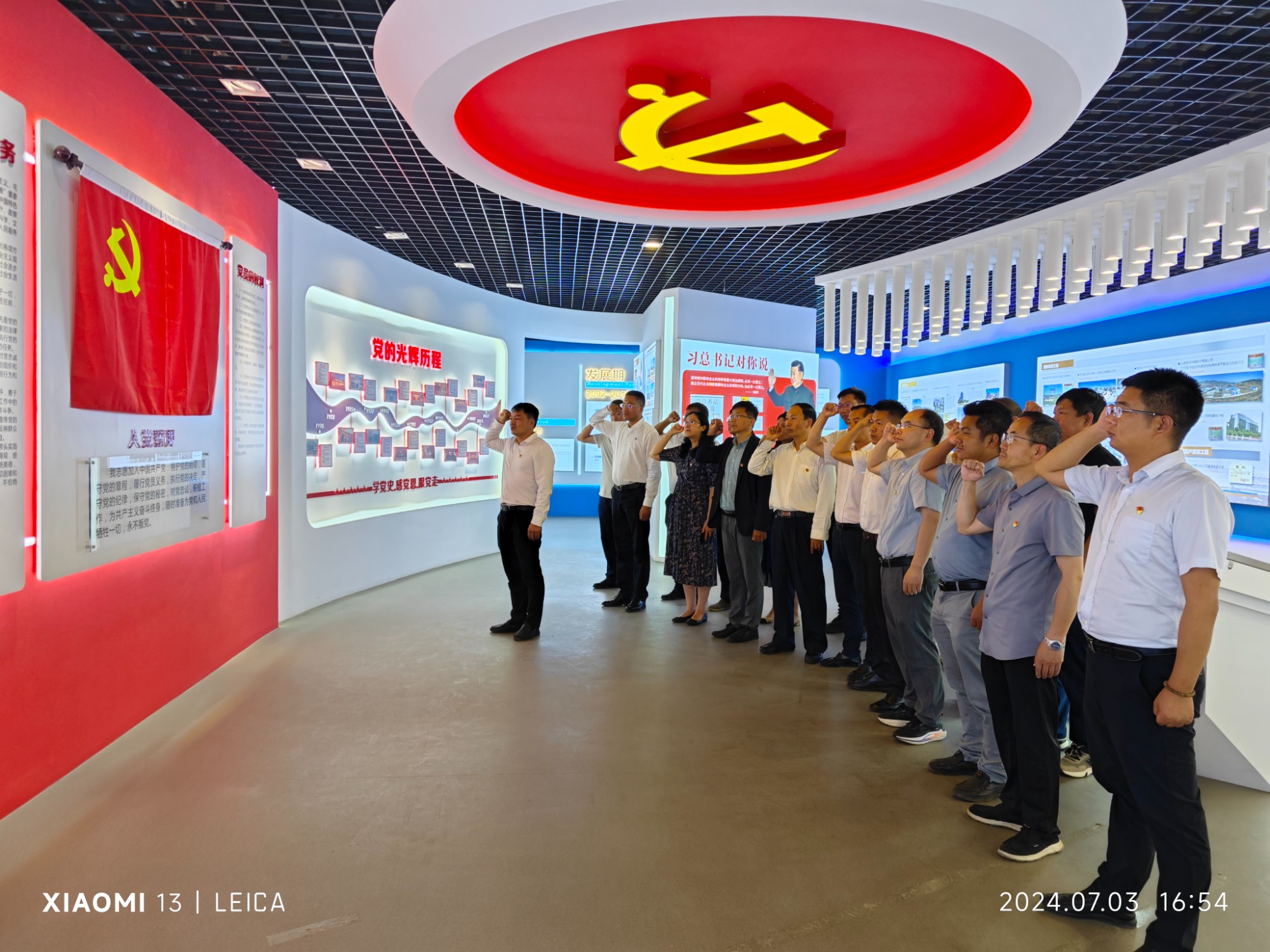 交流結(jié)束后,參會(huì)人員共同參觀了建設(shè)產(chǎn)業(yè)化分公司黨員活動(dòng)陣地、職工創(chuàng)新工作站、勞模創(chuàng)新工作室及廉潔文化區(qū),并在黨旗面前莊重舉起右拳,共同重溫入黨誓詞,回顧初心使命。