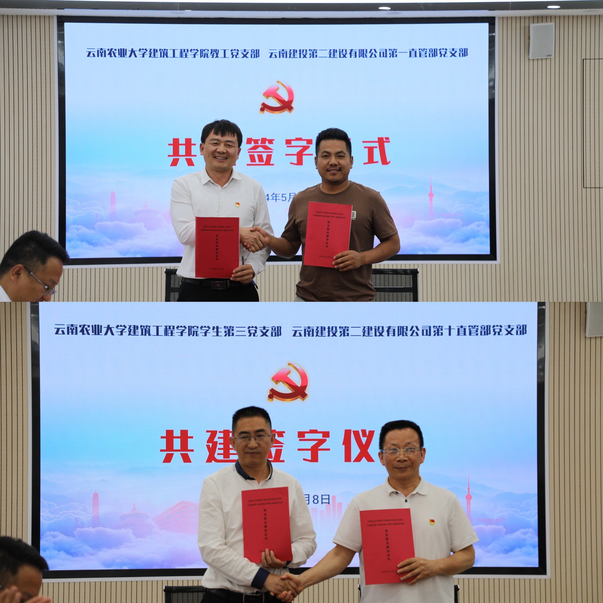 5月8日下午,公司與云南農(nóng)業(yè)大學(xué)建筑工程學(xué)院在建筑工程學(xué)院五樓會(huì)議室舉行院企黨支部共建簽字儀式。云南農(nóng)業(yè)大學(xué)建筑工程學(xué)院黨委書(shū)記王國(guó)賢、黨委副書(shū)記陸志炳,公司黨委書(shū)記、副董事長(zhǎng)董學(xué)友出席簽字儀式。云南農(nóng)業(yè)大學(xué)建筑工程學(xué)院相關(guān)領(lǐng)導(dǎo),公司黨委工作部負(fù)責(zé)人,第一直管部、第十直管部黨政負(fù)責(zé)人參加儀式。