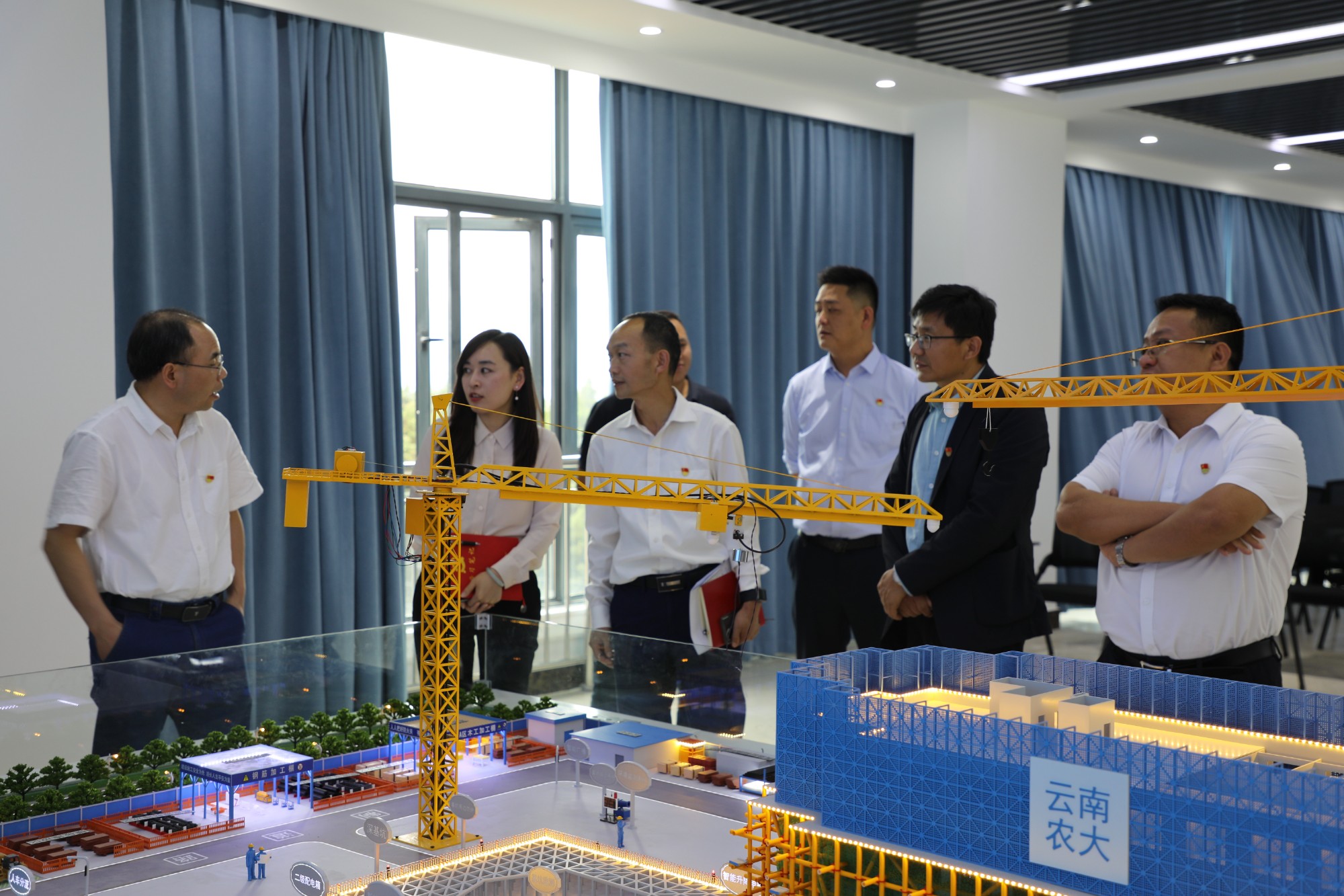 會(huì)議組織開(kāi)展了“光耀魯班精神 培育大國(guó)工匠”主題黨日活動(dòng),與會(huì)人員用鏗鏘有力的聲音合唱了《中華人民共和國(guó)國(guó)歌》《沒(méi)有共產(chǎn)黨就沒(méi)有新中國(guó)》,并共同參觀了云南農(nóng)業(yè)大學(xué)建筑工程學(xué)院智能建造一體化綜合實(shí)訓(xùn)中心。