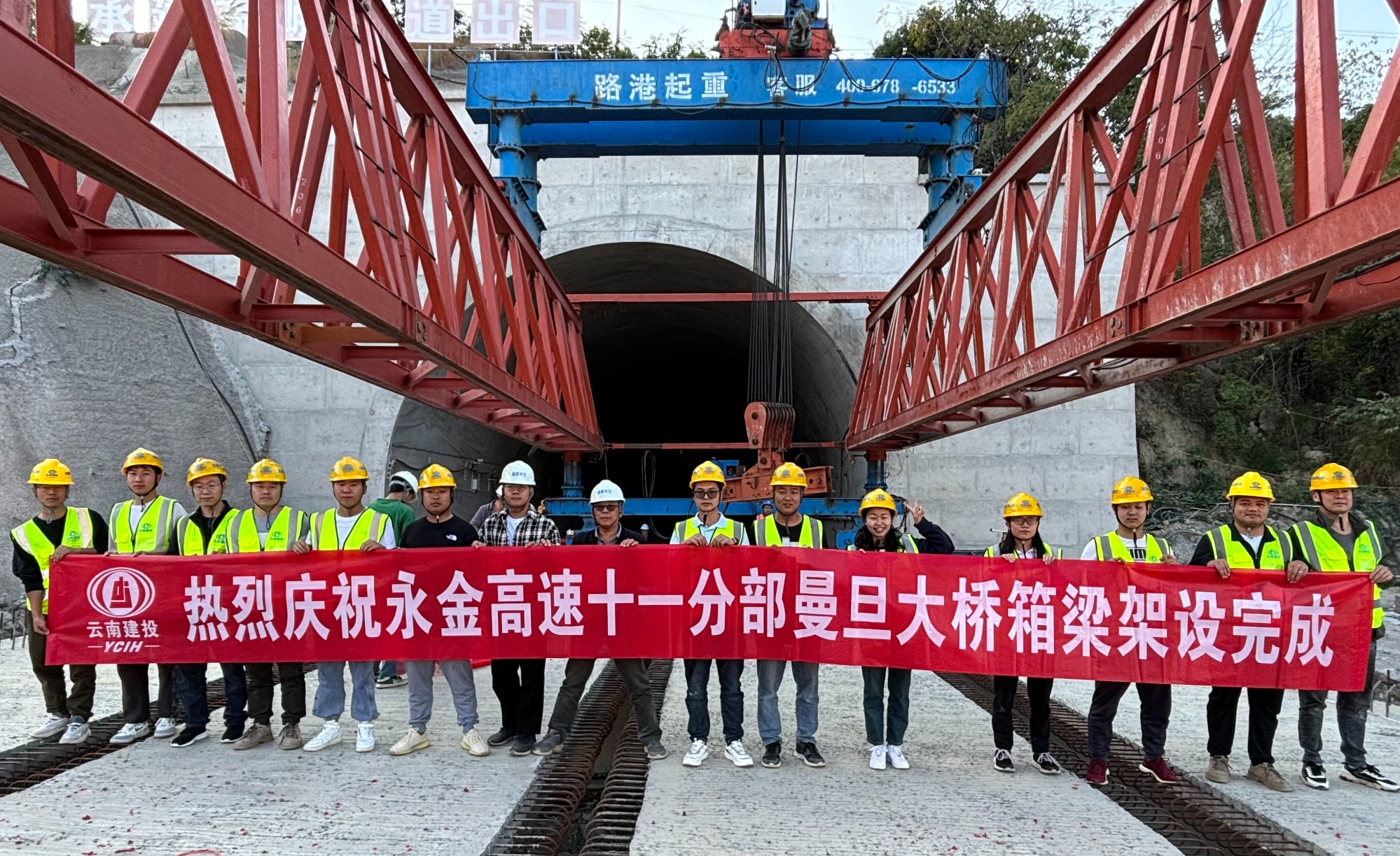 1月13日下午,隨著最后一片箱梁平穩(wěn)落下,由第十九直管部承建的永金高速新平(戛灑)至元江(紅光)段十一分部曼旦大橋順利架設(shè)完成。至此,本標(biāo)段248片箱梁全部架設(shè)完成,為永金高速建成通車按下“快進(jìn)鍵”。