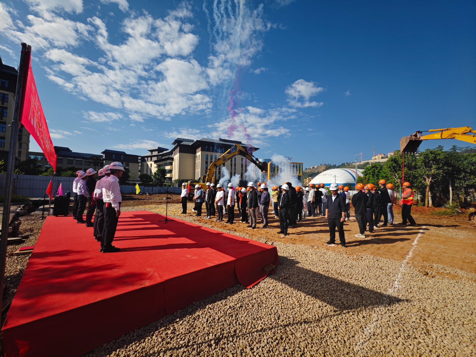 陳定華在開工儀式致辭中表示,本項目開工以后,公司將高度重視項目建設,精心謀劃、科學施策,優(yōu)化生產(chǎn)要素配置,全力推進工程施工進度。一是與建設方現(xiàn)場代表、監(jiān)理方現(xiàn)場代表積極溝通配合,認真策劃分析,優(yōu)化施工結構,倒排工期計劃,確保項目保質保量按時完成建設任務;二是認真貫徹落實“三個工作法”“三個馬上”工作要求,彰顯高原鐵軍精神,用實干實績踐行國企擔當,向元謀縣交上一份滿意的答卷。