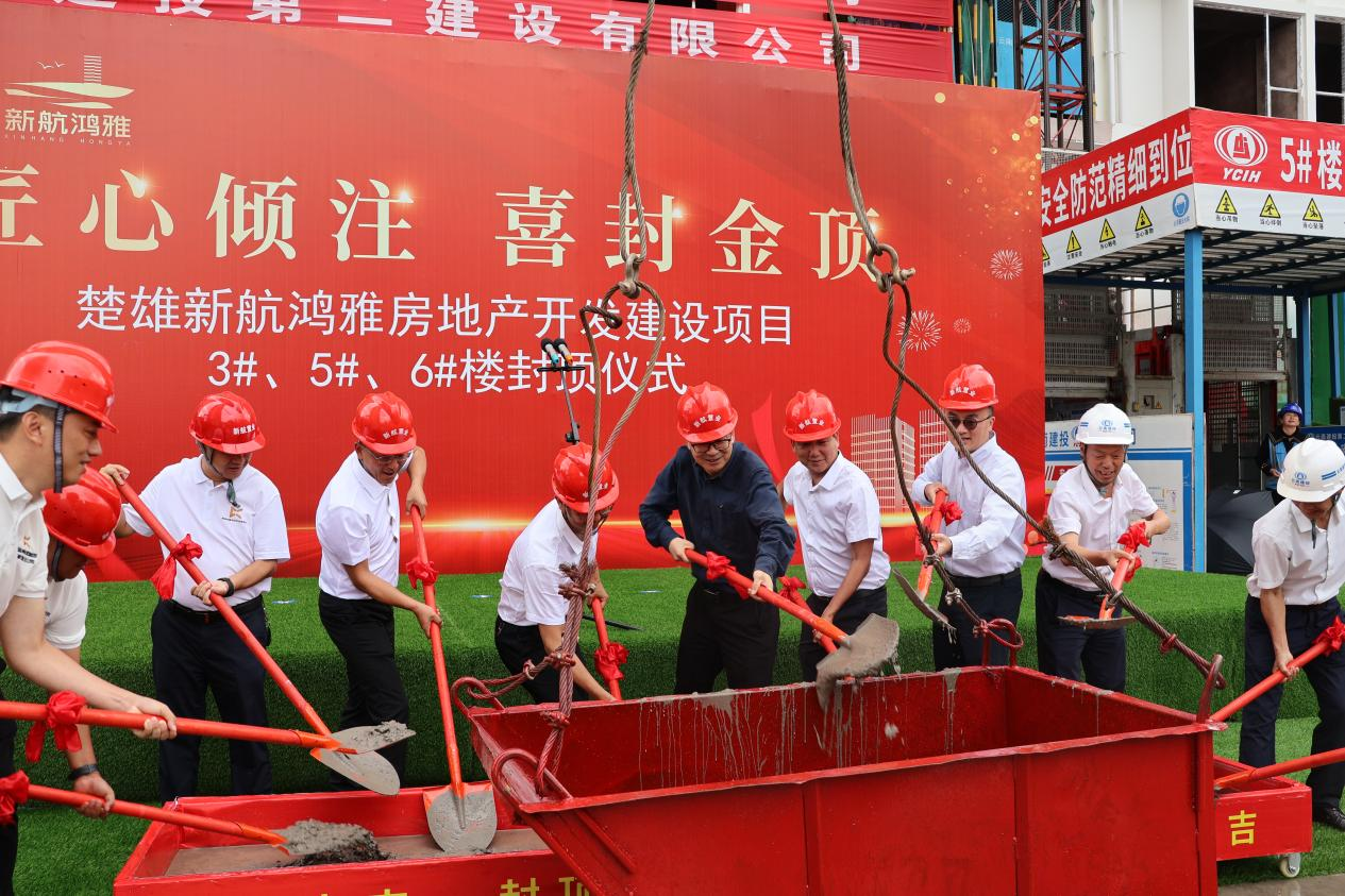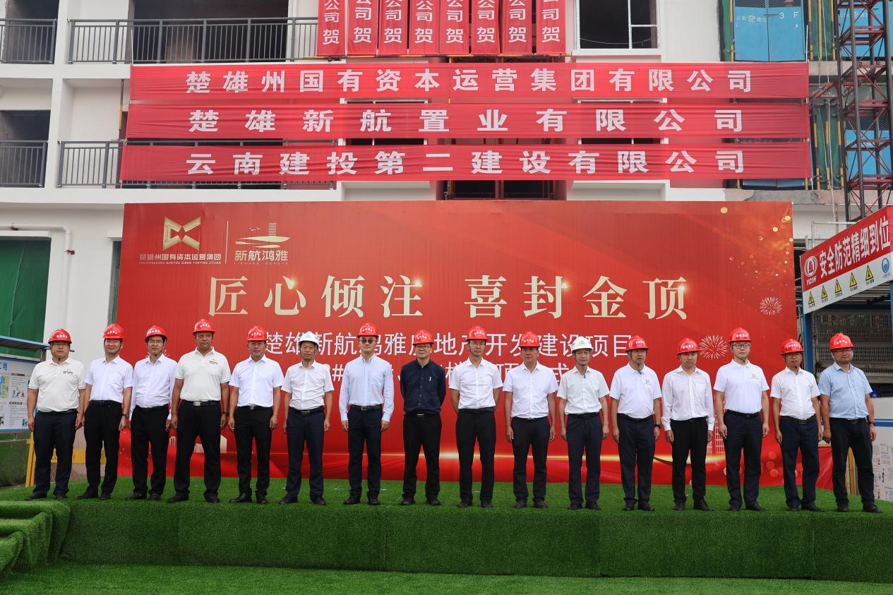 8月22日,由第十直管部承建的楚雄新航鴻雅房地產(chǎn)開(kāi)發(fā)建設(shè)項(xiàng)目3#、5#、6#樓首棟順利封頂。楚雄州住建局、州國(guó)資委、楚雄市政府相關(guān)領(lǐng)導(dǎo),楚雄州國(guó)有資本運(yùn)營(yíng)集團(tuán)有限公司領(lǐng)導(dǎo)班子成員,新航置業(yè)公司負(fù)責(zé)人,公司黨委副書(shū)記、董事長(zhǎng)陳定華,黨委書(shū)記、副董事長(zhǎng)董學(xué)友出席封頂儀式。
