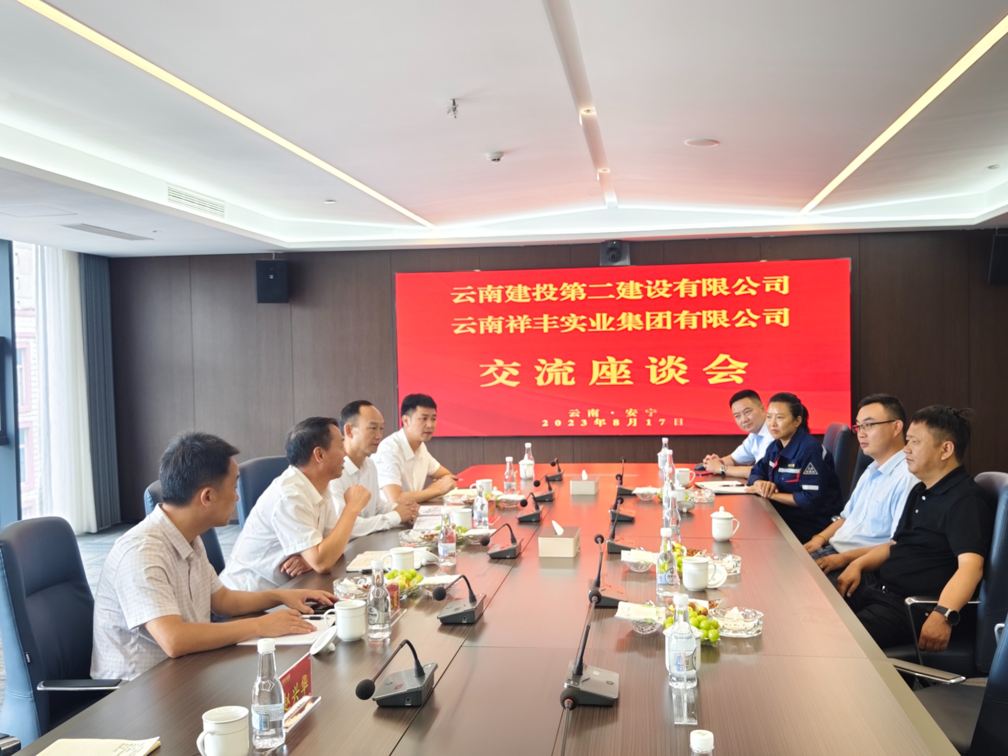 8月17日上午,公司黨委副書記、董事長陳定華,黨委書記、副董事長董學(xué)友,副總經(jīng)理陳本員一行到云南祥豐實業(yè)集團(tuán)有限公司進(jìn)行交流座談,公司第九直管部經(jīng)理陪同。