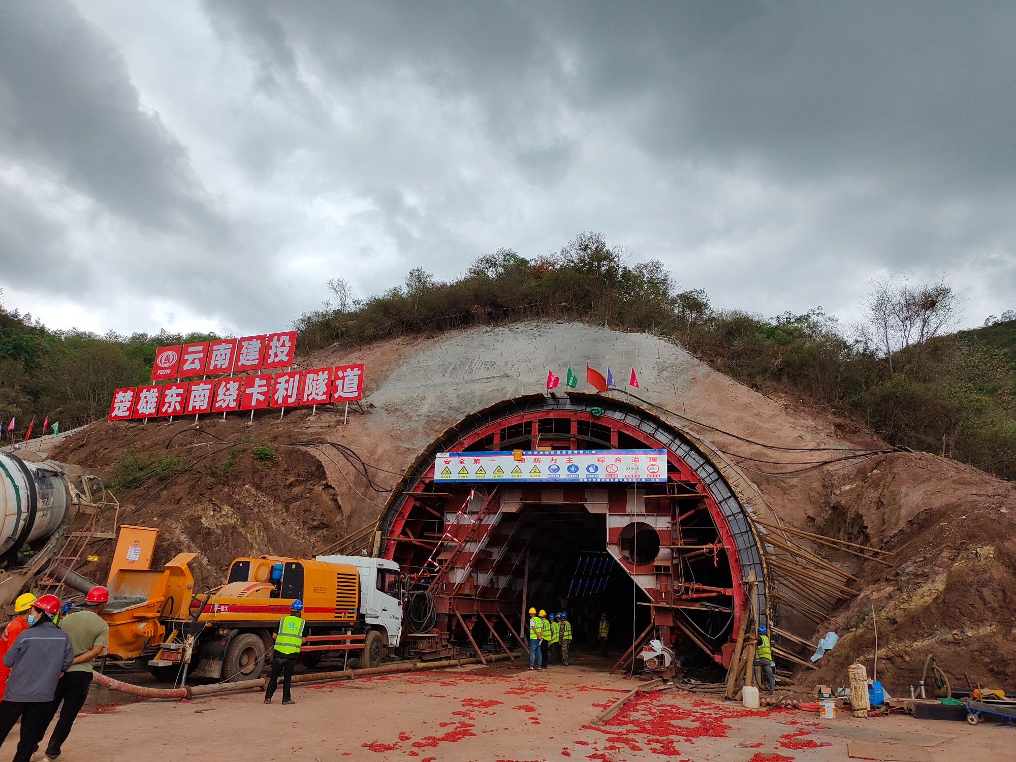 6月21日上午10點(diǎn)30分,伴隨著鞭炮的轟鳴聲,由路橋分公司承建的楚雄市東南繞城高速公路項(xiàng)目土建一分部項(xiàng)目卡利隧道進(jìn)口右幅第一模二襯砌首件順利完成澆筑,此次澆筑標(biāo)志著隧道施工進(jìn)入了新的階段。