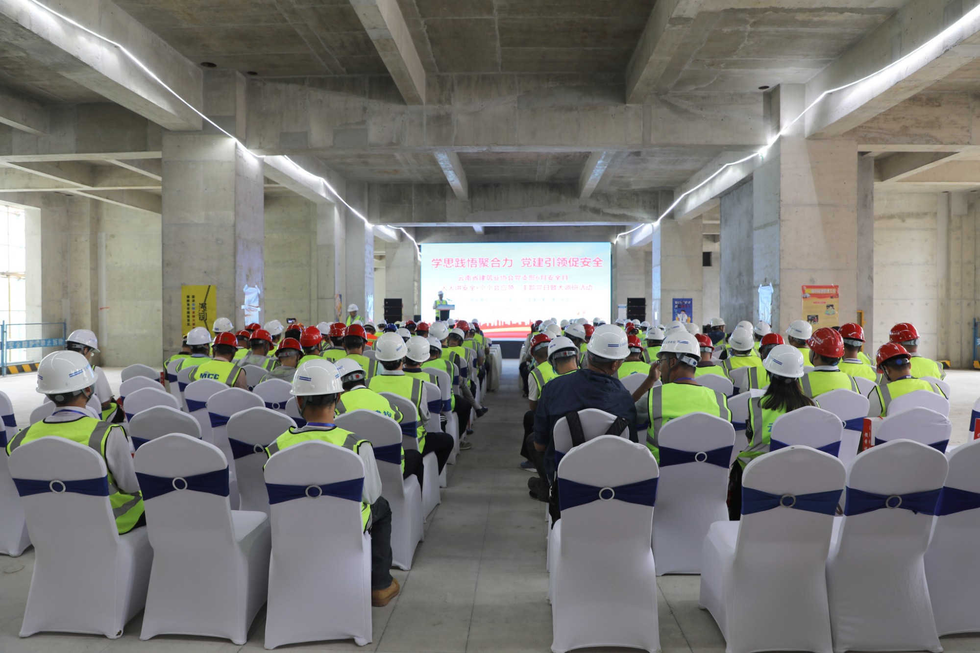 活動中,胡云紅傳達(dá)學(xué)習(xí)了習(xí)近平總書記對安全生產(chǎn)工作發(fā)表的重要講話。協(xié)會黨支部與第九直管部黨支部簽訂了黨建共建協(xié)議。昆明醫(yī)科大學(xué)第一附屬醫(yī)院康復(fù)醫(yī)院項目經(jīng)理交流分享了項目在安全生產(chǎn)方面的做法、經(jīng)驗和成效,全體與會人員參觀了項目工地。