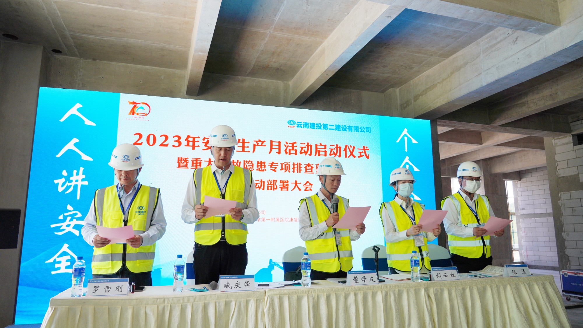 6月3日上午,公司在昆明醫(yī)科大學(xué)第一附屬醫(yī)院呈貢康復(fù)醫(yī)院項(xiàng)目舉辦2023年“安全生產(chǎn)月”啟動(dòng)儀式暨重大事故隱患專項(xiàng)排查整治2023行動(dòng)部署大會(huì)。圍繞“人人講安全 個(gè)個(gè)會(huì)應(yīng)急”主題,安排部署“安全生產(chǎn)月”活動(dòng)和重大事故隱患專項(xiàng)排查整治2023行動(dòng)。公司黨委副書記、副董事長(zhǎng)、總經(jīng)理董學(xué)友,黨委委員、工會(huì)主席胡云紅,副總經(jīng)理臧慶澤,副總工程師陳強(qiáng),安全總監(jiān)羅雪剛出席活動(dòng),活動(dòng)由臧慶澤主持。