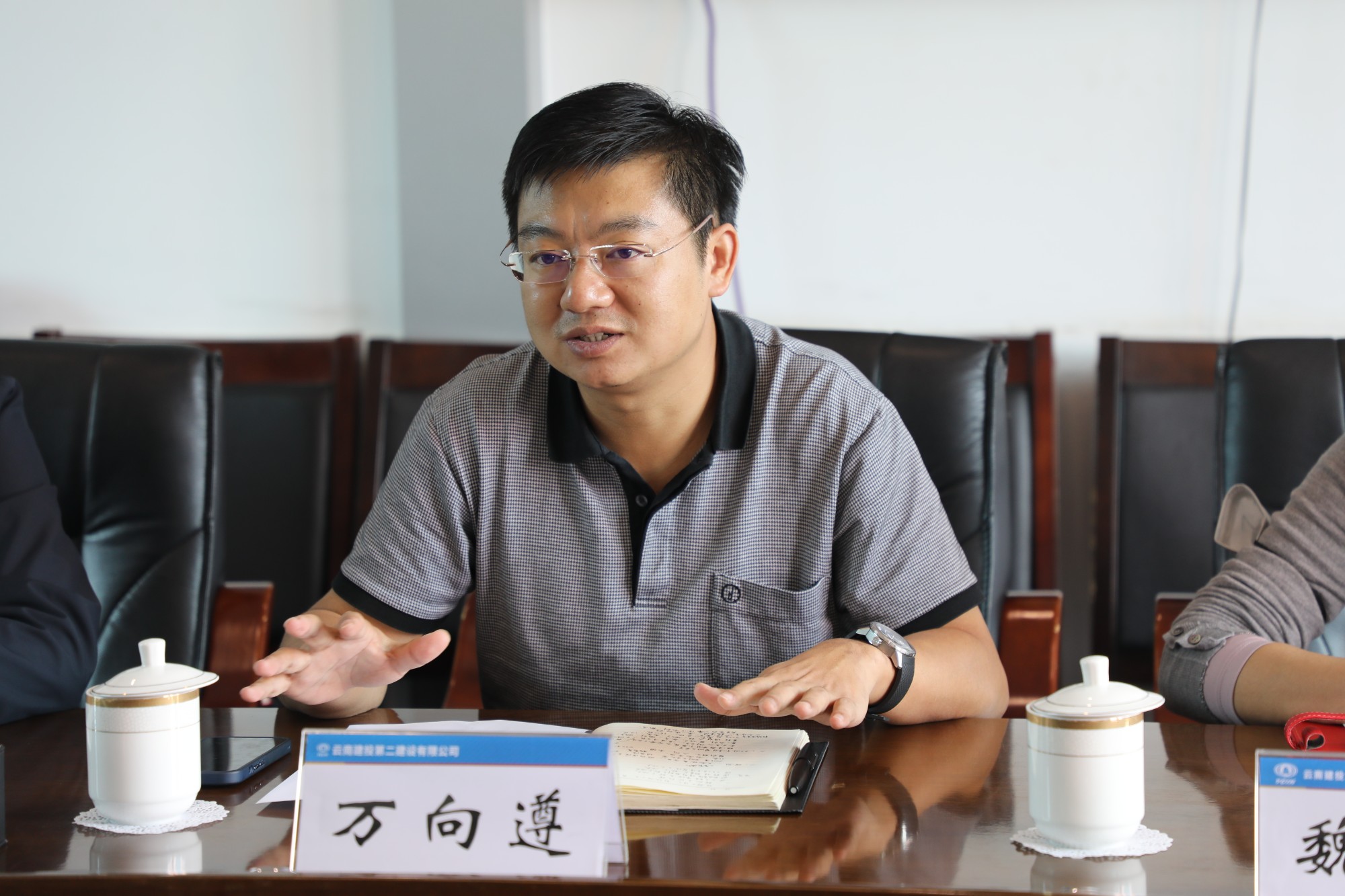 萬向遵對白慶武一行的到來表示熱烈歡迎,并圍繞公司發(fā)展歷史、企業(yè)資質(zhì)、主營業(yè)務(wù)、亮點工程等方面作了介紹。萬向遵指出,公司在云南建投集團的帶領(lǐng)下,堅持穩(wěn)中求進,行穩(wěn)致遠,在房建、市政板塊基礎(chǔ)上進行轉(zhuǎn)型升級,參與了高速公路、安裝、生態(tài)綠化、水利等板塊的項目建設(shè)。圍繞集團“四保一控一樹”實施細則要求,抓實質(zhì)量、安全、技術(shù)、成本管理。后續(xù)公司將積極整合資源,發(fā)揮自身優(yōu)勢,更好地服務(wù)好云龍縣的發(fā)展,也希望未來雙方能深入合作、優(yōu)勢互補,打牢合作基礎(chǔ),爭取更多合作的機會,實現(xiàn)合作共贏。