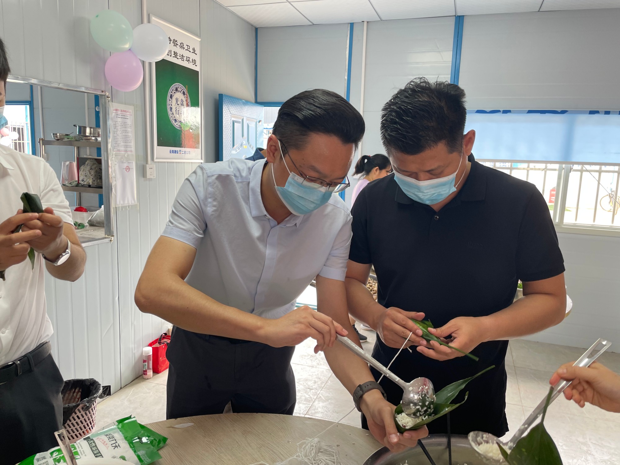 6月3日,正值一年一度的端午節(jié),公司黨委委員、工會(huì)主席胡云紅,副總經(jīng)理、第二直管部經(jīng)理牟其鴻帶領(lǐng)公司工會(huì)辦公室成員,在高原特色物流園一期14#倉庫項(xiàng)目,同節(jié)日期間堅(jiān)守在項(xiàng)目一線職工、產(chǎn)業(yè)工人一同歡慶中國傳統(tǒng)佳節(jié)“端午節(jié)”。大家聚在一起包粽子、包餃子、做包子,以此弘揚(yáng)傳統(tǒng)文化,傳承民族精神,第二直管部相關(guān)負(fù)責(zé)人陪同。