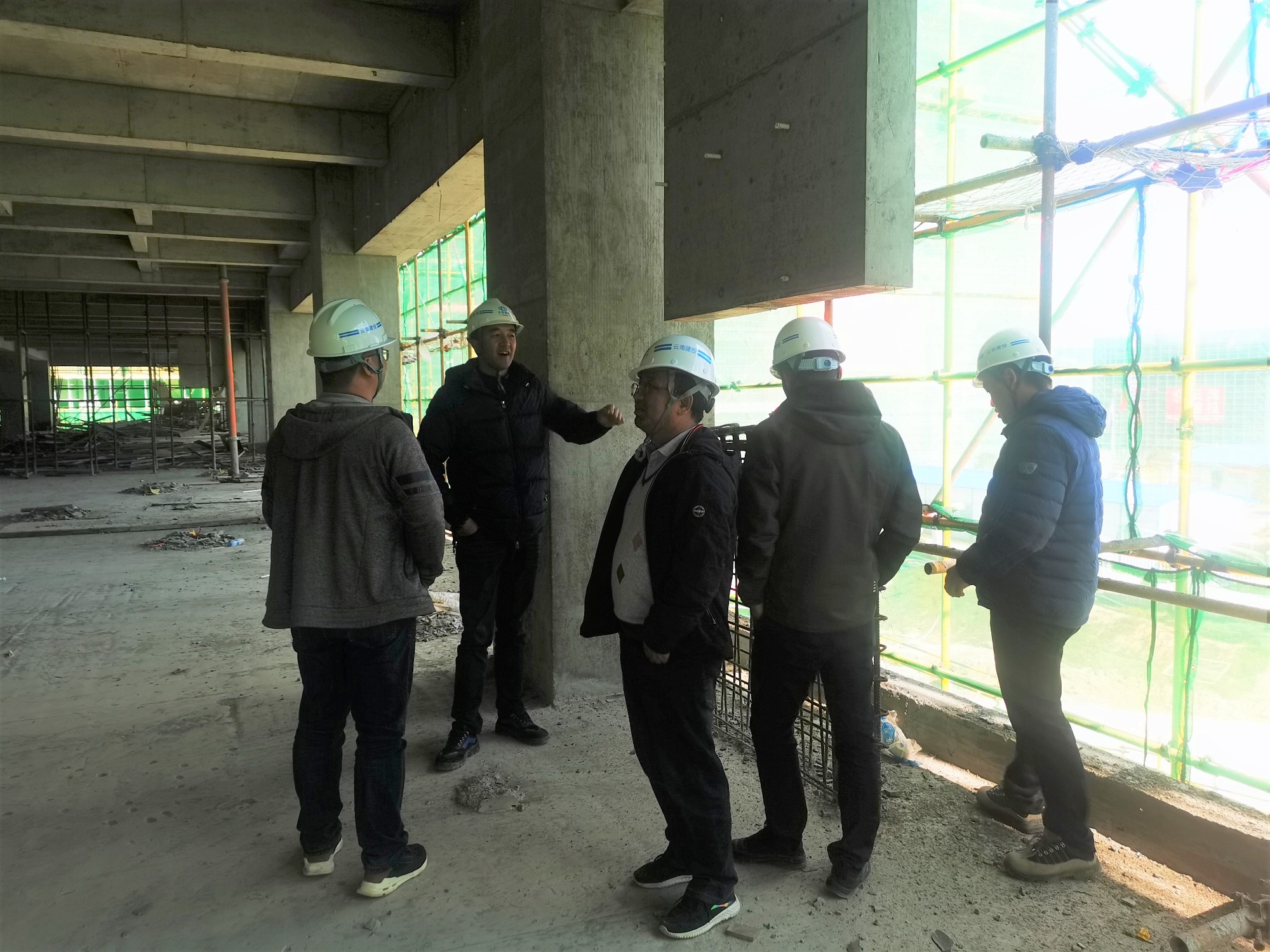 臧慶澤一行聽取了項目經(jīng)理對項目總體情況和工程進度介紹,并深入施工現(xiàn)場視察施工情況,重點對現(xiàn)場安全文明施工、成本管控、施工質(zhì)量控制、裝飾裝修方案編制等方面提出意見。