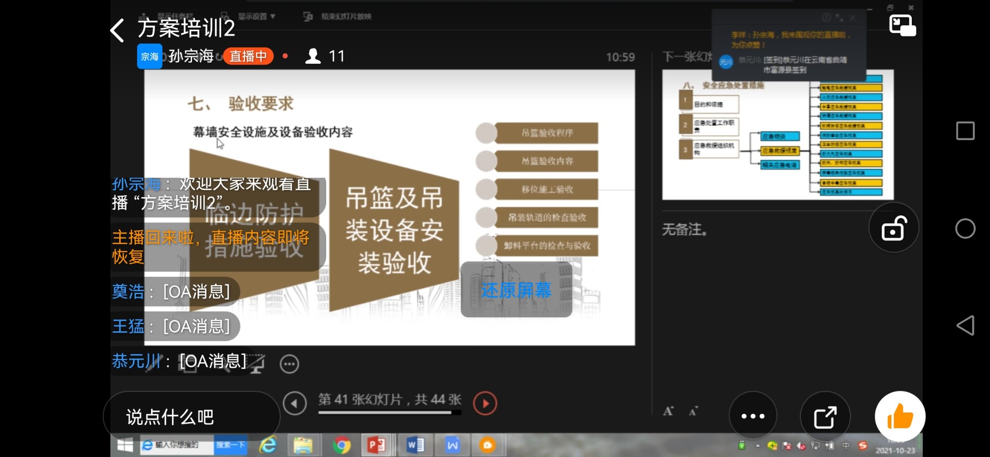 陪訓(xùn)過(guò)程中,付雋蒼對(duì)每個(gè)方案編制要點(diǎn)及內(nèi)容的不足進(jìn)行補(bǔ)充,以提問(wèn)的方式與現(xiàn)場(chǎng)培訓(xùn)人員互動(dòng)、交流。他提出五點(diǎn)要求,一是主任工要對(duì)標(biāo)對(duì)表加強(qiáng)學(xué)習(xí)。二是不積極參加培訓(xùn)的直管部(分公司),部門(mén)要認(rèn)真監(jiān)督,將其納入直管部(分公司)的年終技術(shù)考核。三是要聯(lián)動(dòng)生產(chǎn)管理部,把項(xiàng)目經(jīng)理納入培訓(xùn)人員范疇。四是參加培訓(xùn)的人員要牽頭做好自己分管的工作,發(fā)揮領(lǐng)導(dǎo)作用,支撐直管部的發(fā)展。五是要營(yíng)造良好的學(xué)習(xí)氛圍。