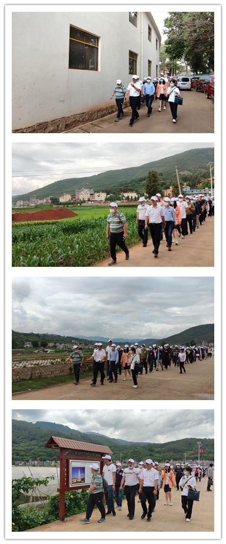下車后,大家整裝出發(fā),重走長(zhǎng)征路。長(zhǎng)征好似一篇宣言書,它向所有人宣示著紅軍的偉大與英勇,它向中國(guó)人民宣示:紅軍的道路就是解放的道路,能夠通往光明的未來。雖然腳下的路已是干凈平坦的水泥路,但是所有人都知道,過去可不是這樣的路。路,從無(wú)到有,從小到大,從艱險(xiǎn)到平坦,它的背后隱藏了多少人的身影,淹沒了多少人的面孔,執(zhí)著前行,哪怕刀山火海,哪怕永無(wú)回頭……
