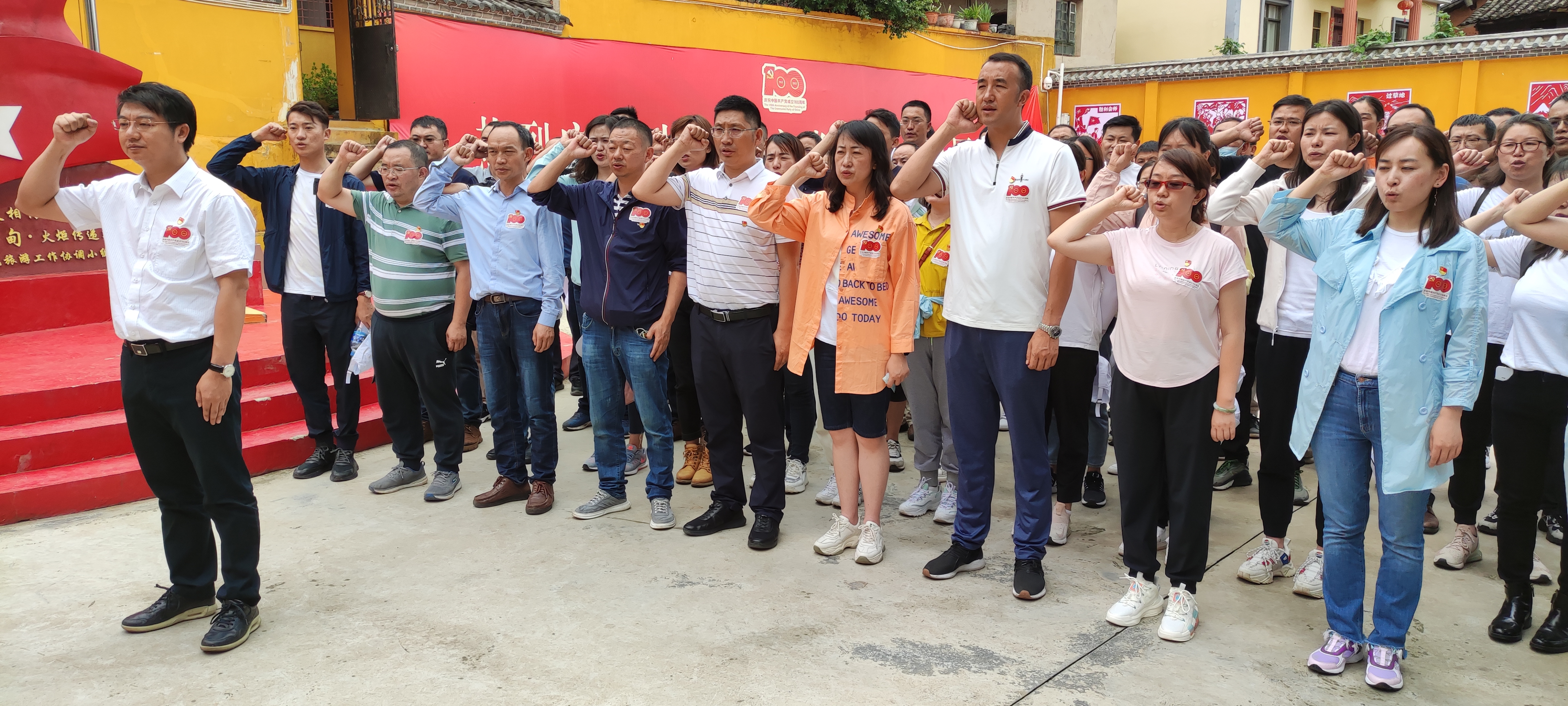 在紀(jì)念館前,面對(duì)莊嚴(yán)的黨旗,全體黨員在萬(wàn)向遵的帶領(lǐng)下,高舉右手,重溫入黨誓詞。全體黨員面向黨旗,高聲宣誓:“我志愿加入中國(guó)共產(chǎn)黨,擁護(hù)黨的綱領(lǐng),遵守黨的章程,履行黨員義務(wù),執(zhí)行黨的決定,嚴(yán)守黨的紀(jì)律,保守黨的秘密,對(duì)黨忠誠(chéng),積極工作,為共產(chǎn)主義奮斗終身,隨時(shí)準(zhǔn)備為黨和人民犧牲一切,永不叛黨。”時(shí)間在變,社會(huì)在變,不變的是中國(guó)共產(chǎn)黨人永恒的初心和使命,公司70余名黨員干部職工鏗鏘的誓詞,神圣而豪邁。