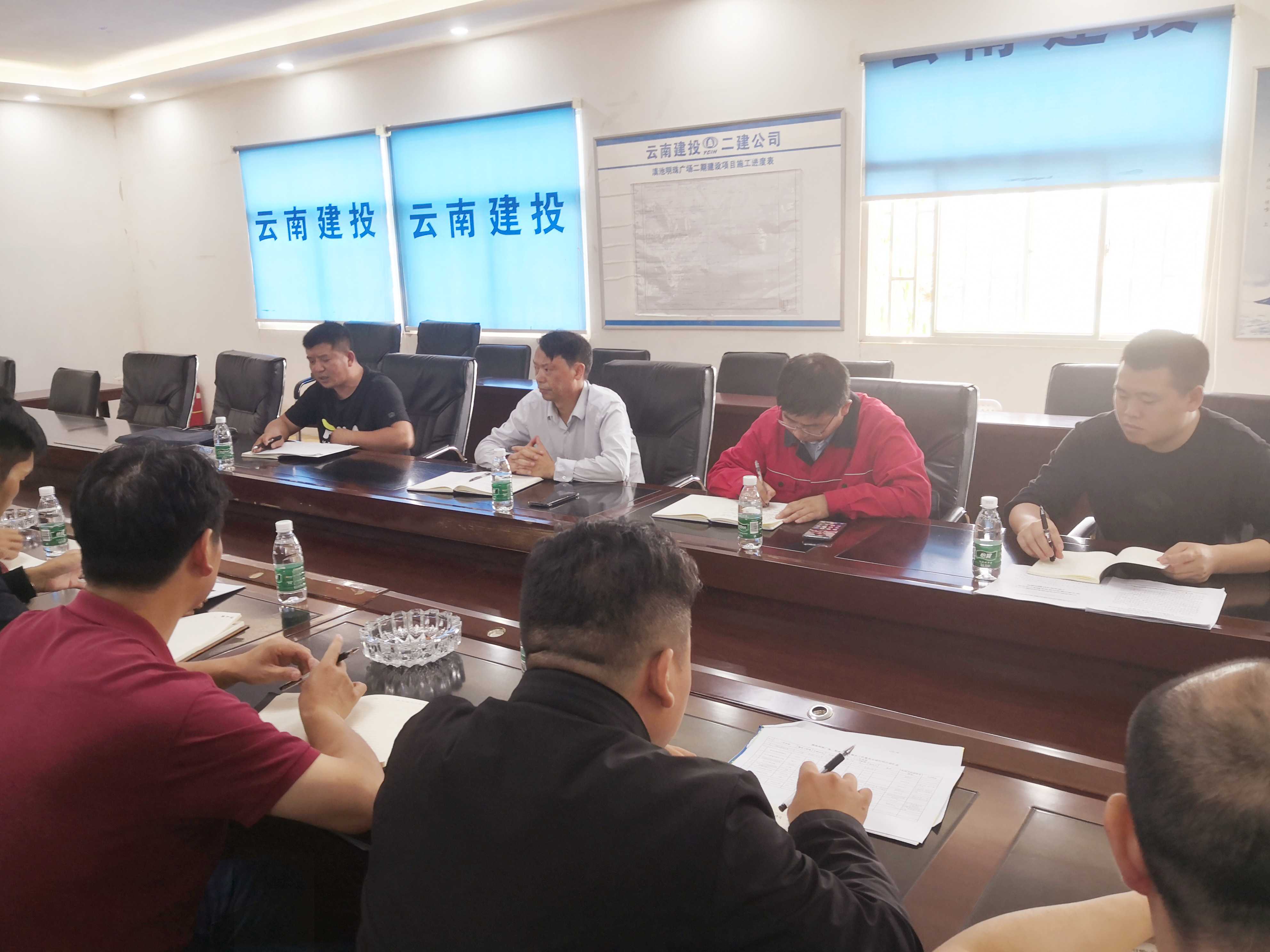 現(xiàn)場檢查完后,陳定華召集各參建直管部相關(guān)人員了解項目收尾情況,各參建直管部匯報了項目現(xiàn)場實際的進(jìn)度、成本、經(jīng)濟(jì)、質(zhì)量、安全、材料以及后續(xù)工作的計劃和安排等的匯報。