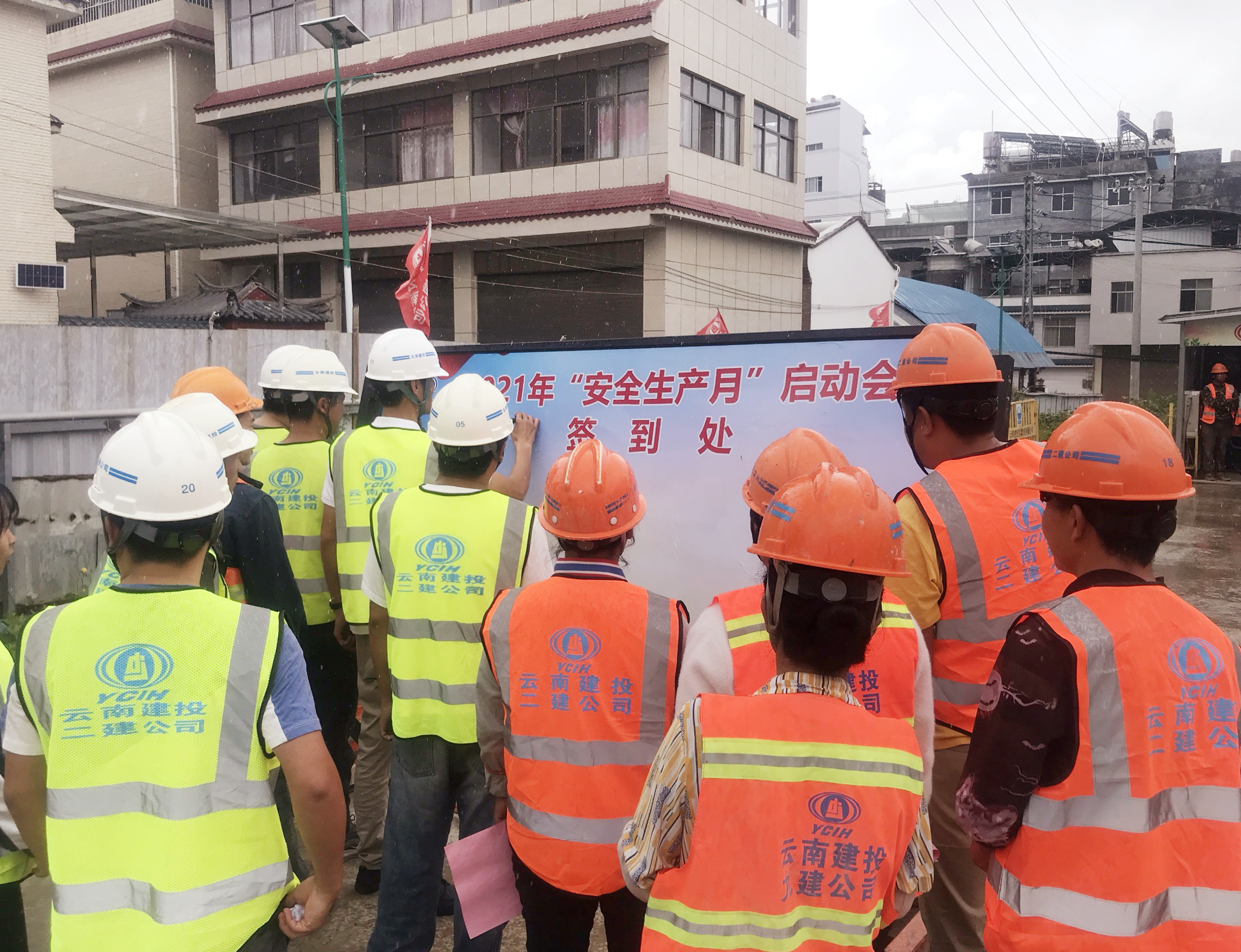 啟動儀式上,各項目安全負(fù)責(zé)人就公司2021年“安全生產(chǎn)月”活動方案及近期相關(guān)文件進行了宣貫學(xué)習(xí)。各項目結(jié)合自身特點,開展了“安康杯”知識競賽、防護用品的正確使用演示及安全管理經(jīng)驗交流等系列活動。安全員帶領(lǐng)大家進行了“安全生產(chǎn)月”誓詞宣誓,并組織全體職工農(nóng)民工在“安全生產(chǎn)月”橫幅上進行簽字。