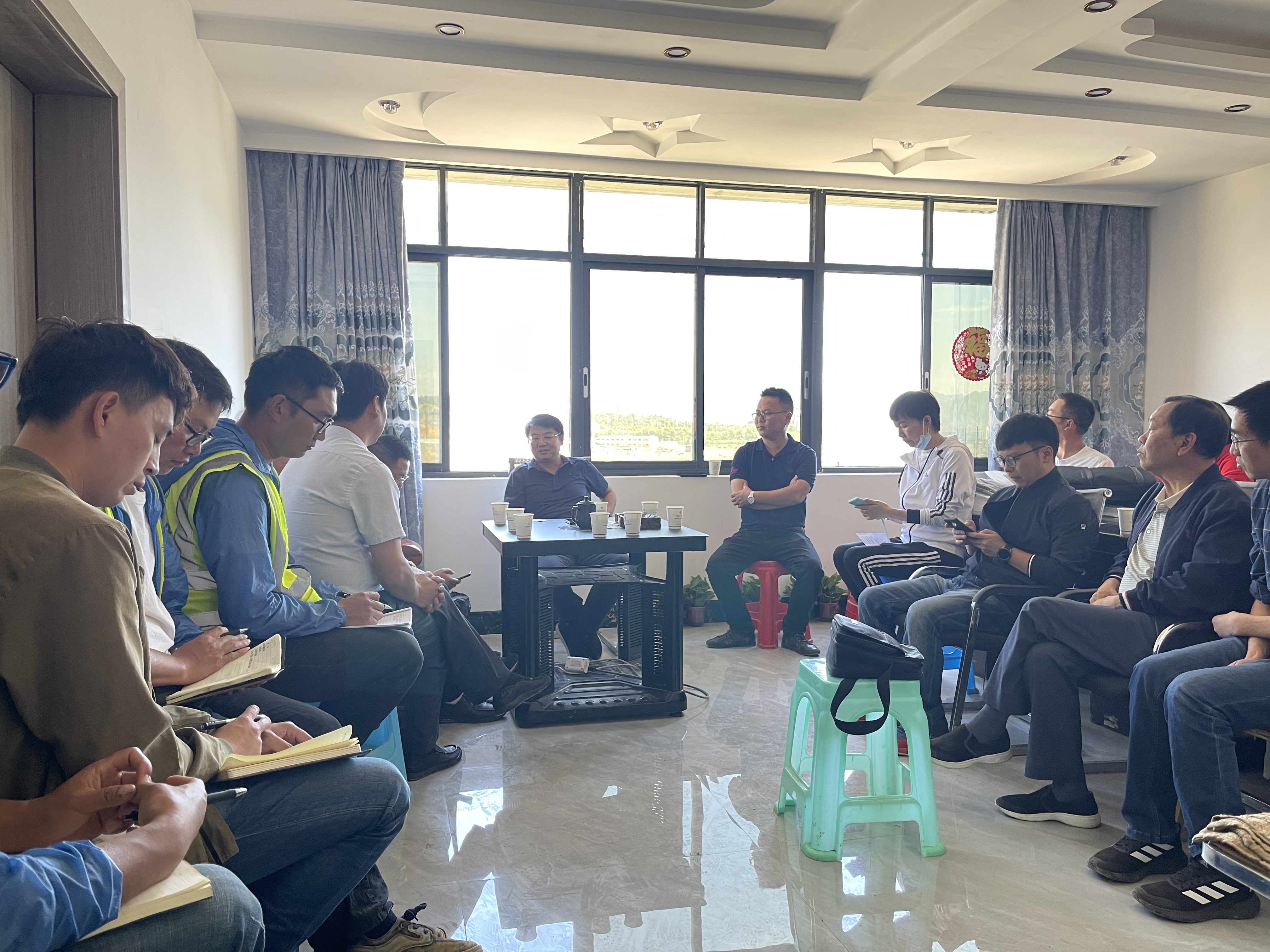 慰問組一行先是到了施工現(xiàn)場進行檢查、指導,后在項目部辦公室與一線全體職工召開了座談會,認真傾聽一線職工心聲,并了解了工資發(fā)放等情況。