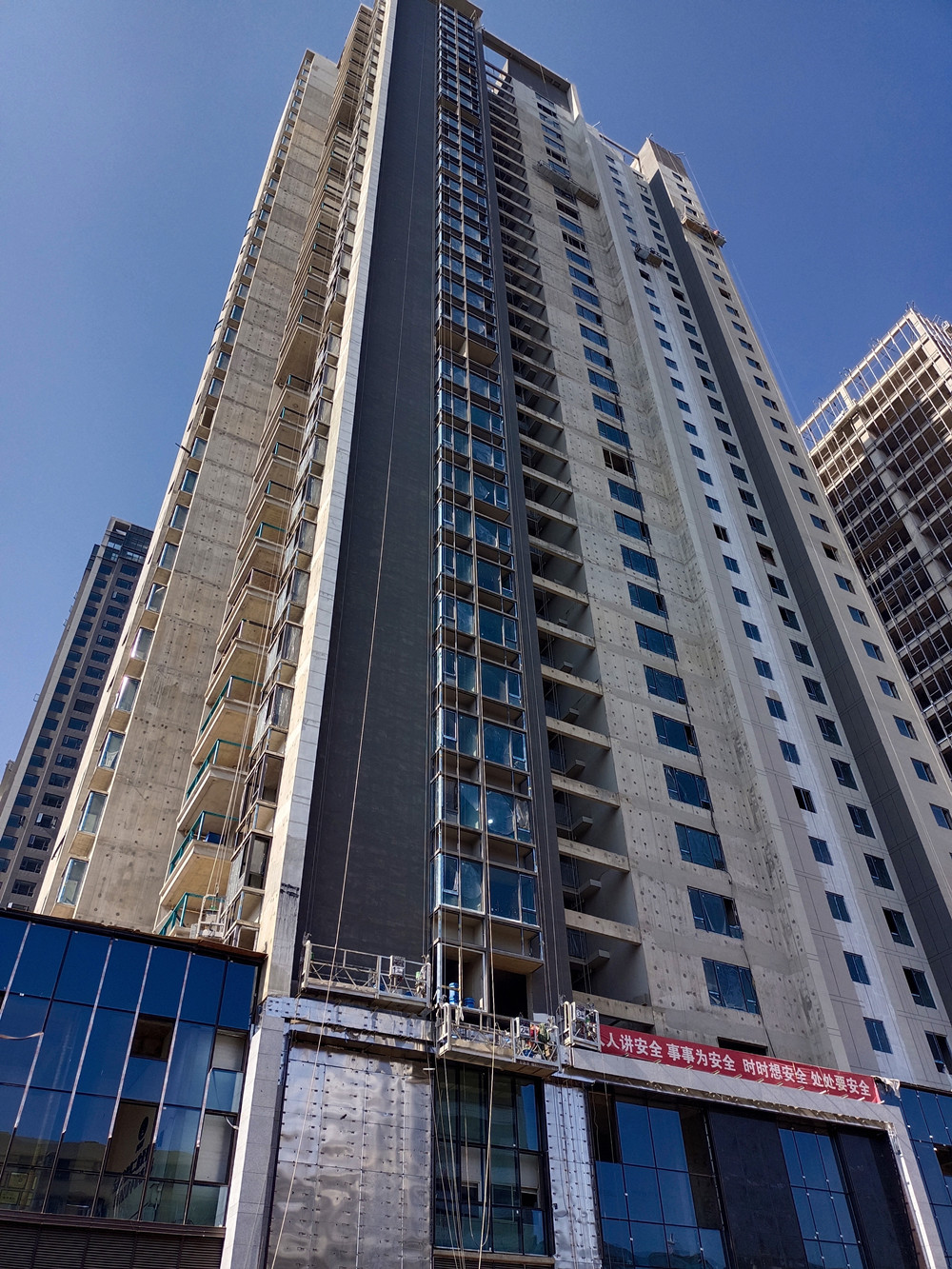 據(jù)悉,8#地塊總建筑面積82378.08m2,其中地上建筑面積63447.45㎡,地下建筑面積18930.63㎡。由一棟超高層住宅(1棟-36層 建筑總高度111.25m);一棟高層辦公樓(2棟-25層建筑總高度99.25m);一棟多層商業(yè)和一個兩層地下室組成。該工程自2018年11月10日開工,歷時兩年零四個月,順利完成節(jié)點目標(biāo)任務(wù)。