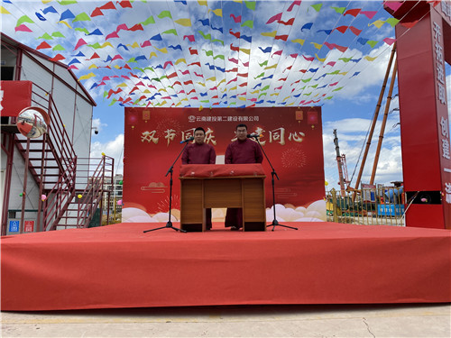 下午2點(diǎn)30分,中秋慰問演出在輕快的音樂聲中正式拉開帷幕。此次演出以“雙節(jié)同慶 二建同心”為主題,各項(xiàng)目的同事們利用下班時間編排的火辣熱舞、搞笑相聲、詩朗誦、精致小品、優(yōu)美合唱等9個節(jié)目都紛紛呈現(xiàn)在我們的眼前,一張張青春自信的臉上洋溢著燦爛的笑容,到處都是節(jié)日歡快的氣氛。