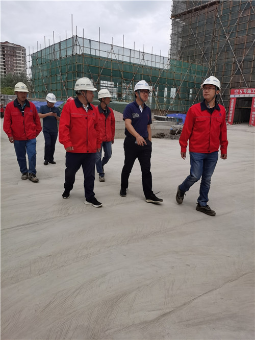 萬向遵一行深入施工現(xiàn)場,了解項目進展情況,先后查看了高層建筑、地下室頂板、別墅的外觀實體質(zhì)量以及現(xiàn)場文明施工等情況,聽取了項目部關于質(zhì)量、安全、進度、成本、四新技術、團隊管理等方面的情況匯報,相關負責人針對項目的成本管控作了重點匯報。