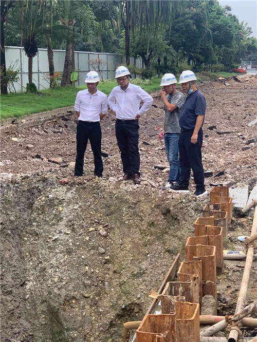 7月16日,公司黨委書記萬向遵帶領(lǐng)生產(chǎn)管理部負(fù)責(zé)人到芒市中心城區(qū)綜合管廊PPP一期建設(shè)項(xiàng)目調(diào)研指導(dǎo)工作。第十二直管部經(jīng)理、項(xiàng)目負(fù)責(zé)人陪同。