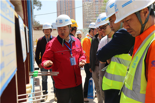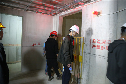 參觀施工現(xiàn)場(chǎng)過(guò)程中,不時(shí)有同事向講解員了解項(xiàng)目現(xiàn)場(chǎng)情況,講解員還著重向大家介紹了華潤(rùn)悅府項(xiàng)目實(shí)測(cè)實(shí)量的操作方法。