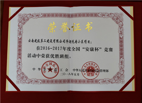 公司華潤悅府小區(qū)項目喜獲全國“安康杯”競賽優(yōu)勝班組榮譽稱號