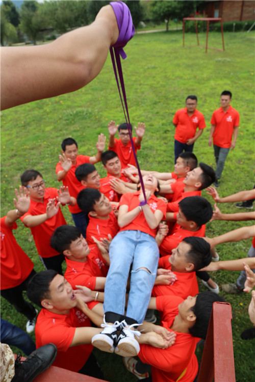 “信任背摔”教會(huì)新員工克服恐懼、勇往直前,用信任的心態(tài)相信團(tuán)隊(duì)中的伙伴,相互理解支持,增進(jìn)團(tuán)隊(duì)成員之間的信任,最終達(dá)成一致目標(biāo)。