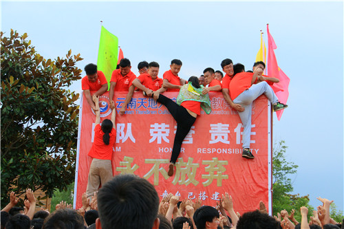 最后的翻越“畢業(yè)墻”讓我們看到了新員工身上的責(zé)任和擔(dān)當(dāng)、奮力和堅(jiān)持,新員工們互相當(dāng)“基座”、做保護(hù)、拽隊(duì)友,一個(gè)接一個(gè)翻越高墻,當(dāng)最后一名新員工抓著上一名隊(duì)友的腿被成功拉上高墻的那一刻,人群沸騰,也將此次的拓展活動(dòng)推向了高潮。一整天的拓展活動(dòng)讓大家認(rèn)識(shí)到個(gè)人潛能的無限性、團(tuán)隊(duì)步調(diào)一致的重要性和挑戰(zhàn)創(chuàng)新的必要性,也讓大家收獲到了專業(yè)與效率、交流與分享、團(tuán)隊(duì)與榮譽(yù)、責(zé)任與擔(dān)當(dāng)、感動(dòng)與力量。