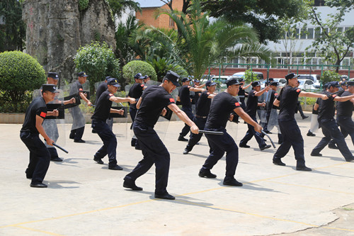 本次培訓(xùn)班于8月19日開(kāi)班,來(lái)自集團(tuán)所屬各單位的120名護(hù)衛(wèi)隊(duì)骨干參加了為期三天的集中式訓(xùn)練。訓(xùn)練過(guò)程中,隊(duì)員們吃苦耐勞,團(tuán)結(jié)一致,經(jīng)受住了高溫與烈日的雙重考驗(yàn),原本計(jì)劃為期一周的訓(xùn)練內(nèi)容在三天時(shí)間里就全部完成,隊(duì)員整體素質(zhì)得到迅速提升。在當(dāng)天的結(jié)業(yè)儀式上,全體參訓(xùn)人員分為四個(gè)方陣向出席儀式的領(lǐng)導(dǎo)展示了單兵隊(duì)列訓(xùn)練動(dòng)作、應(yīng)急棍術(shù)以及警棍盾牌術(shù)等各項(xiàng)訓(xùn)練成果,現(xiàn)場(chǎng)表現(xiàn)得到了領(lǐng)導(dǎo)們的一致認(rèn)可。